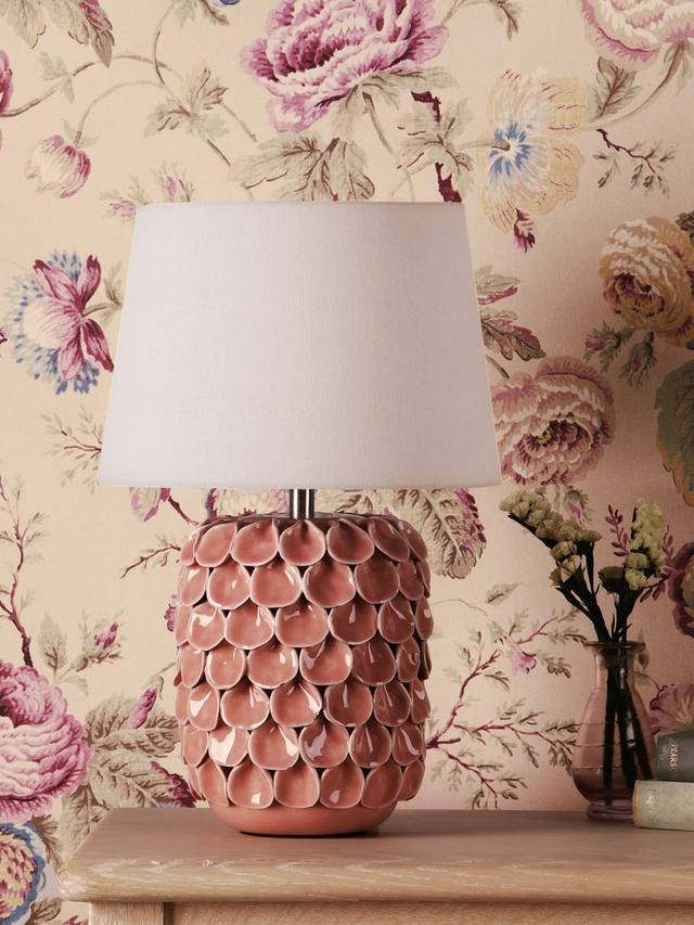 Добавьте индивидуальности вашему дому с помощью настольной лампы Laura Ashley Marwick. Её фактурное основание из розовой керамики притягивает взгляд, а абажур из натуральной ткани излучает тёплое, уютное сияние.