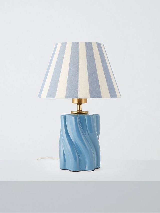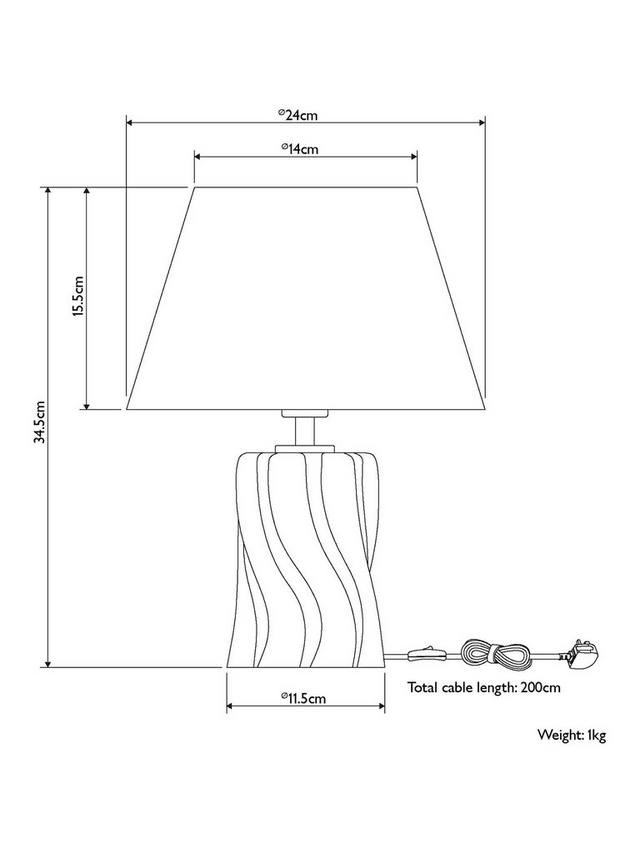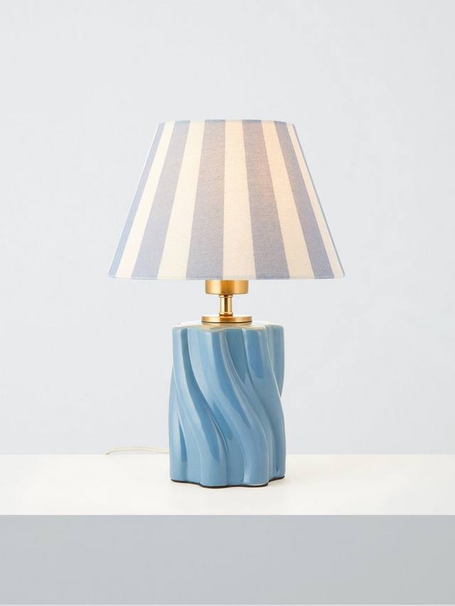 Наша керамическая настольная лампа Twist, вызывающая ностальгию, имеет глянцевое основание и яркий полосатый абажур. Нам нравится её выразительный размер, и мы с удовольствием используем её в прихожей, гостиной или на столике в спальне. Требуется одна светодиодная лампа ES.