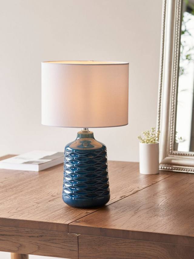 Эта настольная лампа с керамическим основанием и тканевым абажуром излучает тёплый свет. Основание имеет ребристую отделку и доступно в различных ярких или нейтральных цветах, поэтому теперь стало проще, чем когда-либо, добавить цветовой акцент и текстуру в ваше пространство.