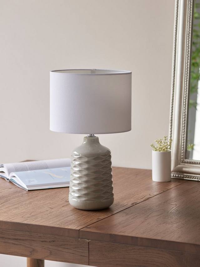 Эта настольная лампа с керамическим основанием и тканевым абажуром излучает тёплый свет. Основание имеет ребристую отделку и доступно в различных ярких или нейтральных цветах, поэтому теперь стало проще, чем когда-либо, добавить цветовой акцент и текстуру в ваше пространство.