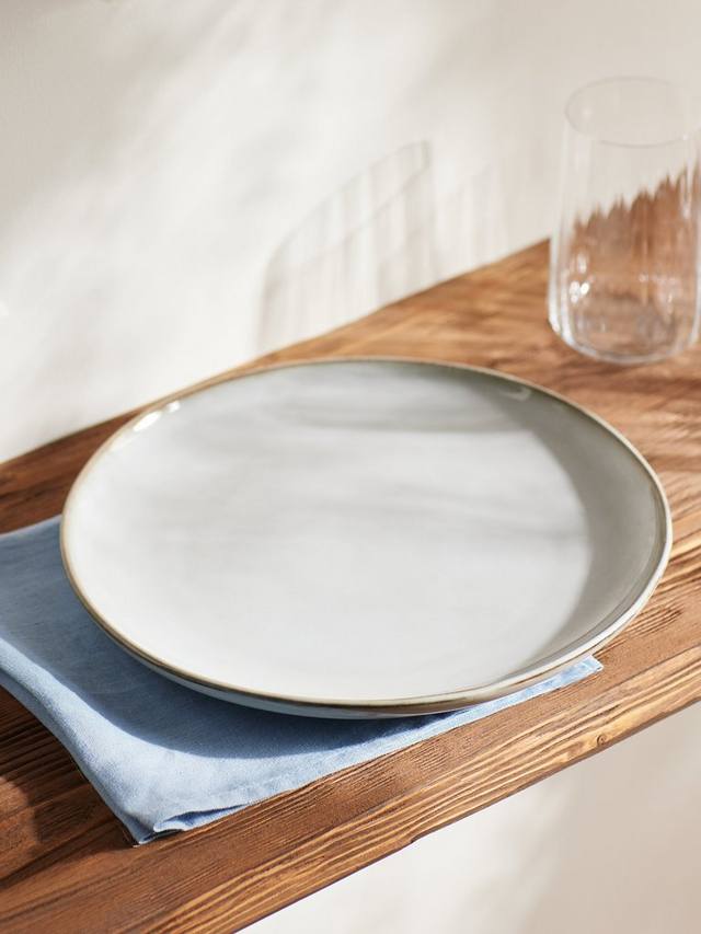 Эта единственная в своем роде обеденная тарелка покрыта реактивной глазурью, которая создает едва заметные различия между предметами, делая каждый предмет уникальным. Изготовлена из керамики органичной формы, ее можно мыть в посудомоечной машине, морозильной камере и микроволновой печи для ежедневного использования.