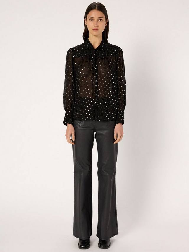 Блузка в горошек от Gerard Darel станет изюминкой любого вечера, тонко переливаясь металлизированной нитью. Благодаря классическому крою и длинным рукавам она будет комфортной и эффектной в любой ситуации.