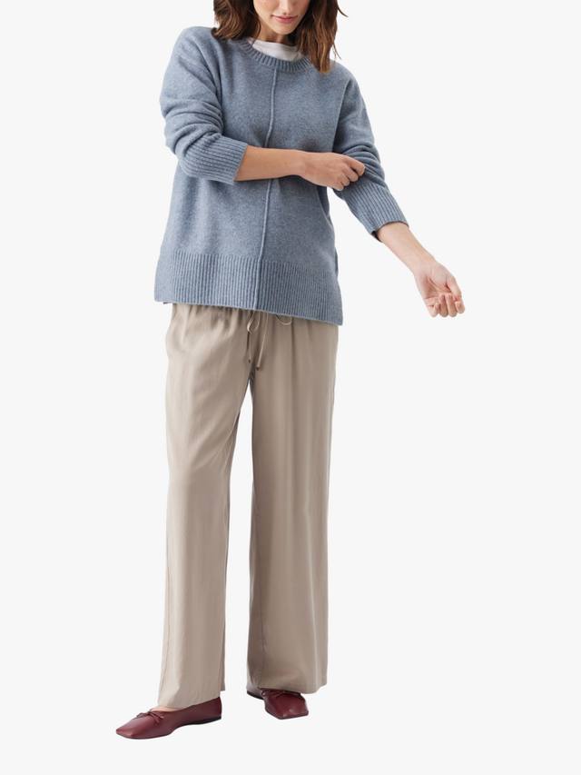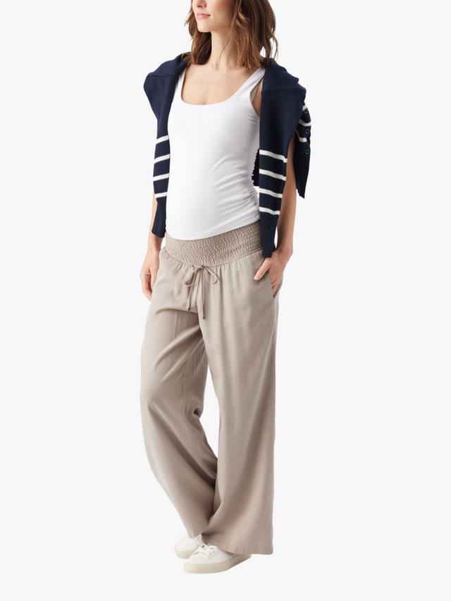 Эта модель имеет свободную длину и широкий силуэт, а также присборенный эластичный пояс со шнурком, что гарантирует идеальную посадку на протяжении всей беременности и после неё. Вы сможете сразу отправиться с работы на выходные, просто переобувшись.