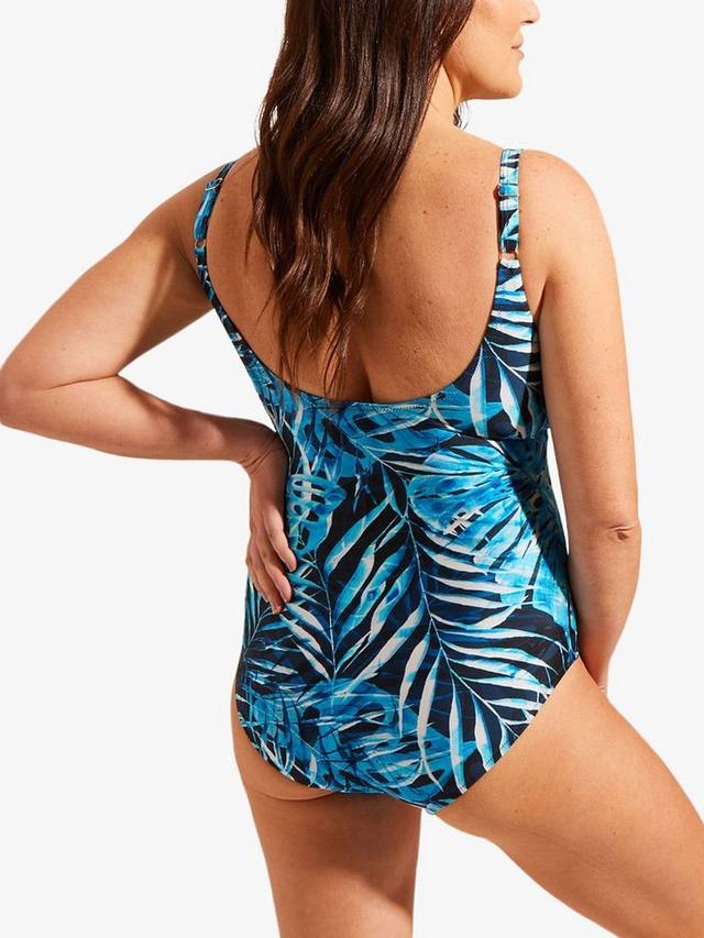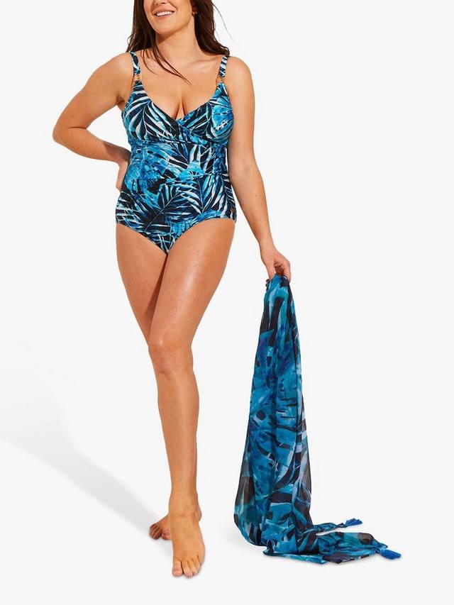 Классический и элегантный купальник стандартной длины с ярким тропическим принтом. Он разработан с технологией утяжки живота, которая корректирует фигуру и обеспечивает идеальную посадку. Регулируемые бретели дополнены золотистой металлической отделкой. Идеальный образ для бассейна.
