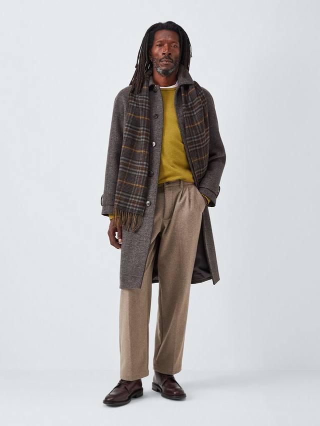 Характерный шарф с клетчатым узором снаружи и декоративной бахромой по краям.