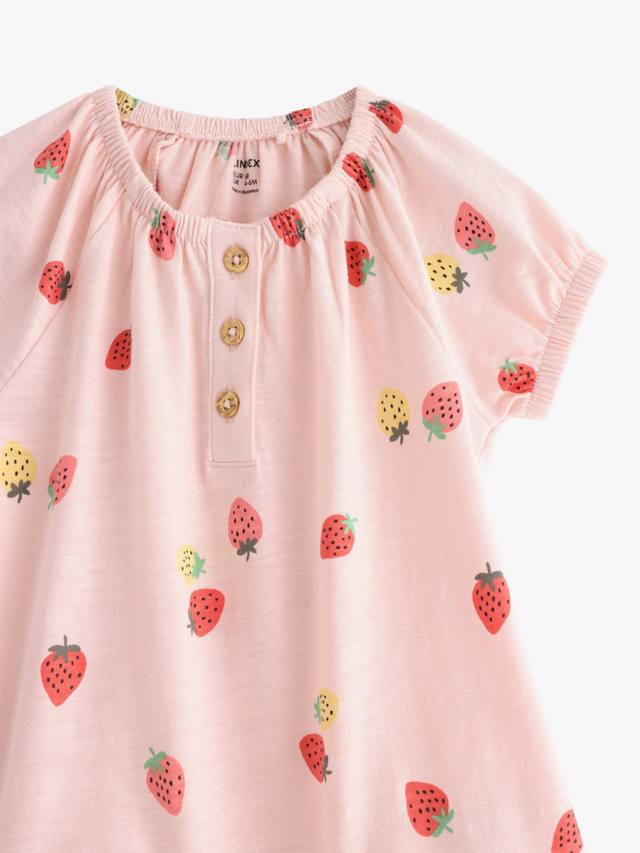 Комбинезон с короткими рукавами и милым, игривым принтом в виде клубники, выполнен из мягкого хлопкового трикотажа для максимального комфорта. Эластичные манжеты на рукавах и штанинах обеспечивают маленьким исследователям полную свободу движений.