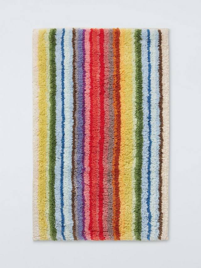 Этот коврик для ванной с полосками с обеих сторон изготовлен из стеганого хлопка, обеспечивающего мягкость.