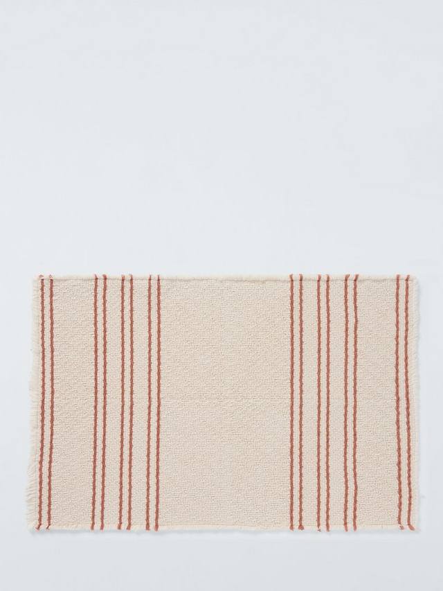Этот фактурный полосатый хлопковый коврик для ванной соткан из мягких цветов для создания непринужденного образа.