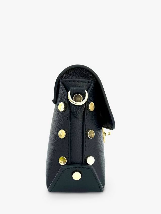 Сумка Bloxsome от Apatchy, изготовленная в Италии из мягкой зернистой кожи с зернистой текстурой, полностью на подкладке и украшена золотой фурнитурой. Украшена стильными заклёпками по бокам и имеет практичный внутренний карман на молнии. Сумка, которую можно носить на плече или через плечо, легко вместит кошелек, ключи, мобильный телефон и косметичку. Сумка поставляется в фирменном чехле-пыльнике и включает съёмный регулируемый ремень из кожи в тон.