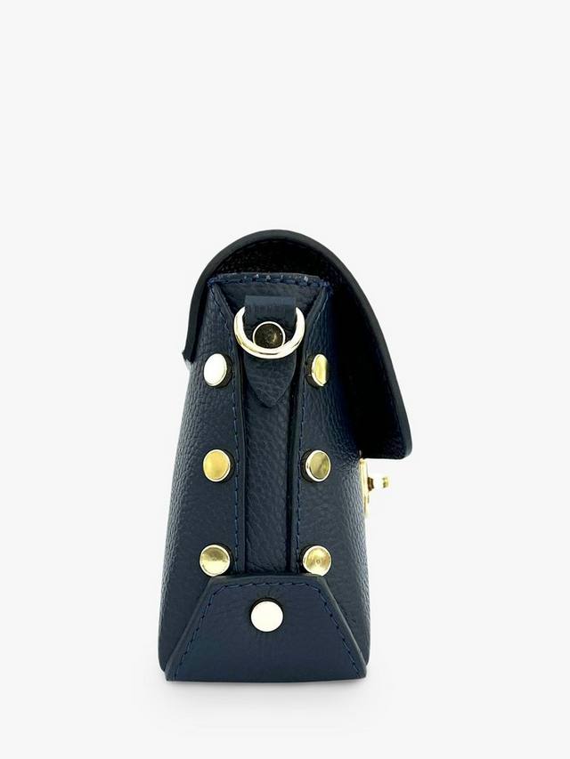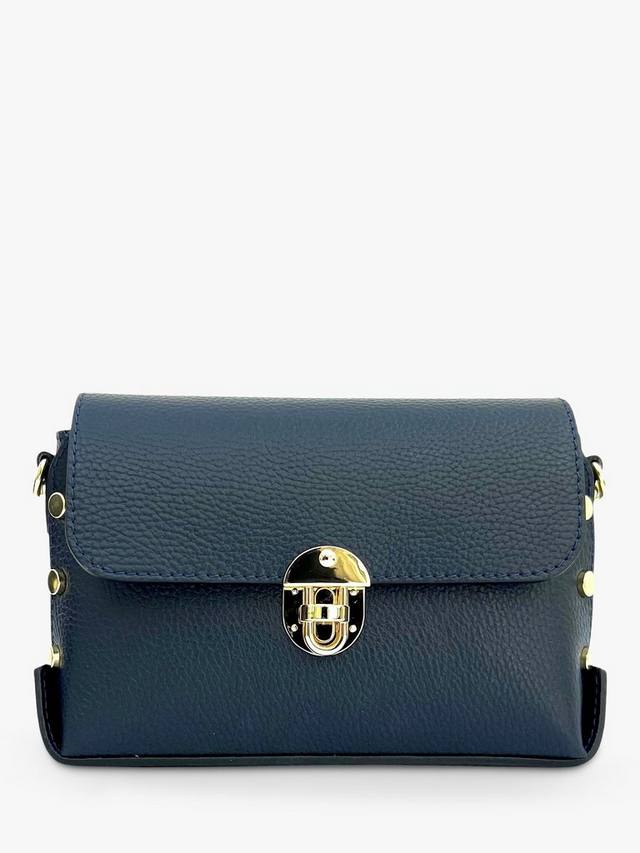 Сумка Bloxsome от Apatchy, изготовленная в Италии из мягкой зернистой кожи с зернистой текстурой, полностью на подкладке и украшена золотой фурнитурой. Украшена стильными заклёпками по бокам и имеет практичный внутренний карман на молнии. Сумка, которую можно носить на плече или через плечо, легко вместит кошелек, ключи, мобильный телефон и косметичку. Сумка поставляется в фирменном чехле-пыльнике и включает съёмный регулируемый ремень из кожи в тон.