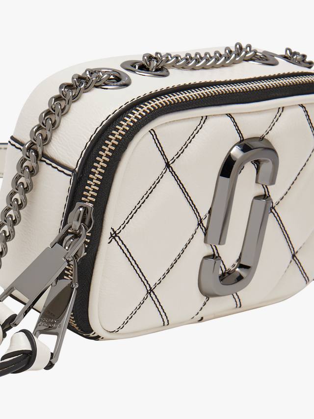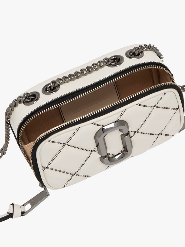 Эта компактная сумка через плечо, более мягкая версия культовой сумки Snapshot от Marc Jacobs, выполнена из стеганой кожи, вдохновлённой Stam. Ремешок-цепочка позволяет носить её как через плечо, так и через плечо. Благодаря элегантной фурнитуре J Marc, контрастной чёрной строчке, вместительному отделению на молнии сверху и накладному карману сзади, эта универсальная сумка легко перейдёт как из дневного образа в вечерний.