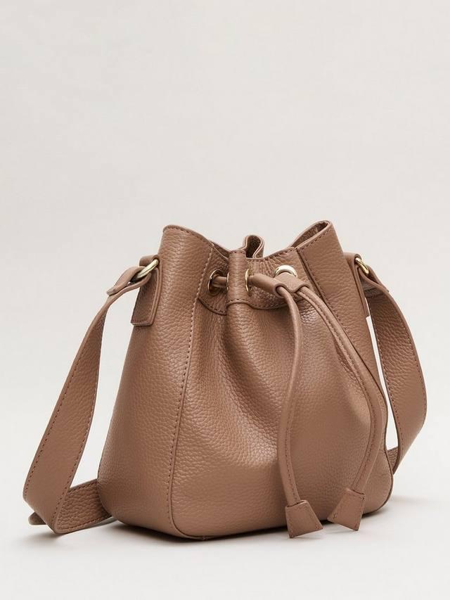 Носите все необходимое стильно в этой кожаной сумке-ведре. Сумка выполнена в мягком оттенке, который легко сочетается со всеми вашими любимыми стилями. Она дополнена современной завязкой и ремешком через плечо, идеально подходящим для повседневной носки.
