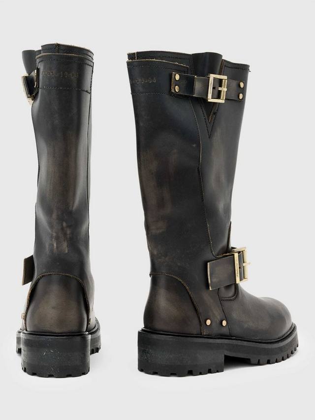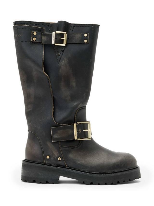 Уверенно проводите зимние дни в этих прочных кожаных байкерских ботинках. Конструкция с пряжкой обеспечивает оригинальный внешний вид и надежную посадку, а каблук средней высоты обеспечивает комфорт и уверенность, куда бы вы ни завели свои дела или приключения.