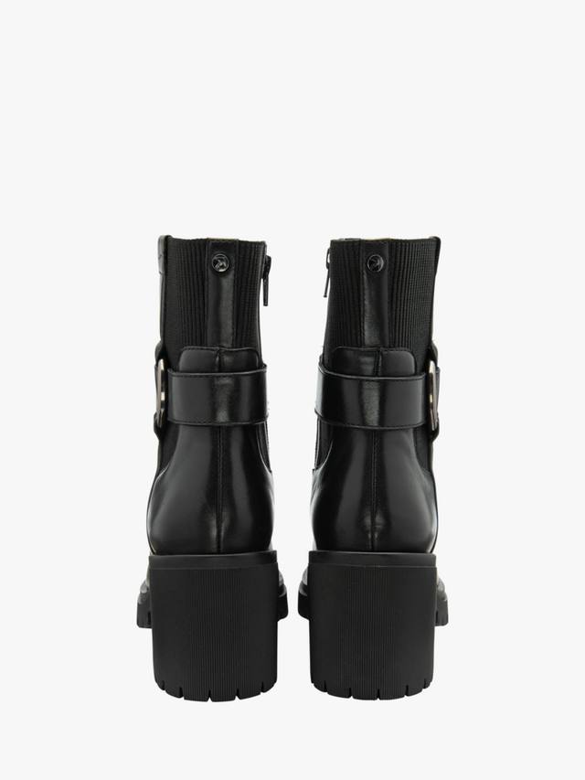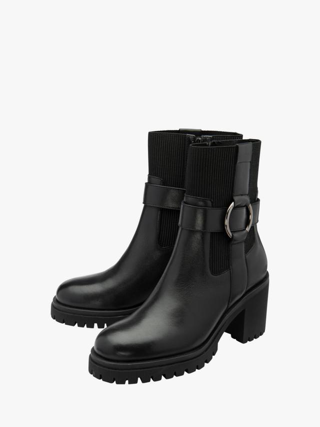 Дополните свой повседневный образ ботильонами Kirkton. Эти ботинки средней высоты из чёрной кожи дополнены эластичными вставками по всему периметру для надёжной и гибкой посадки, которая не сковывает движений. Изюминкой является ремешок с кольцом из оружейной стали, придающий ему элегантный индустриальный вид.