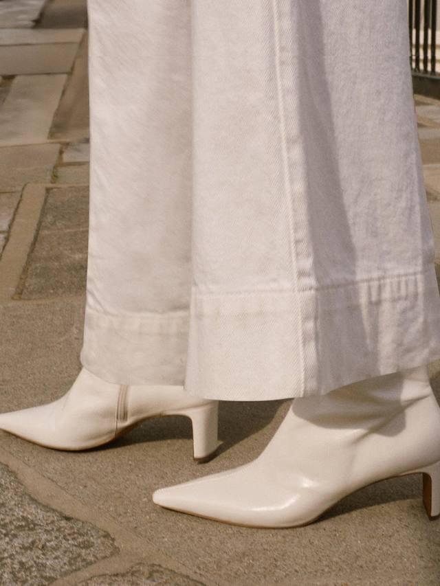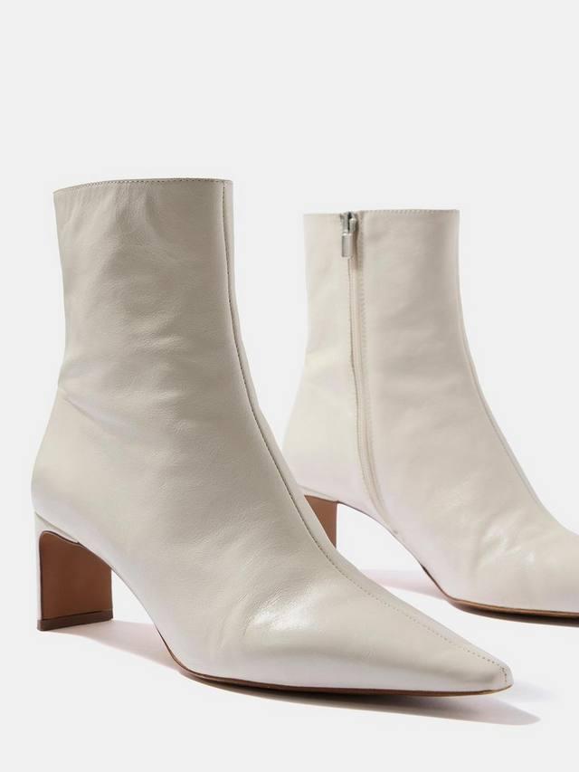 Ботинки Mint Velvet из гладкой кожи. Острый носок и блочный каблук обеспечивают стиль и комфорт, а удобная молния сбоку делает образ простым для насыщенного дня. Идеально подходит для элегантных дневных образов.