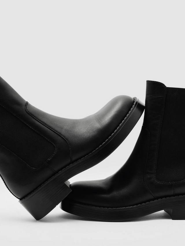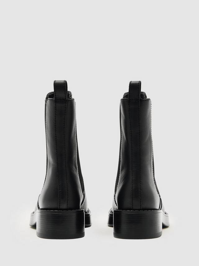 Вступите в свой день уверенно в этих кожаных ботильонах Chelsea с прочным блочным каблуком и эластичной застежкой для надежной посадки. Круглый носок и элегантная отделка делают их идеальными для любого случая.