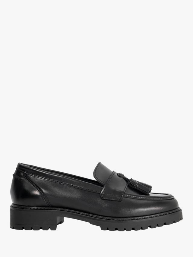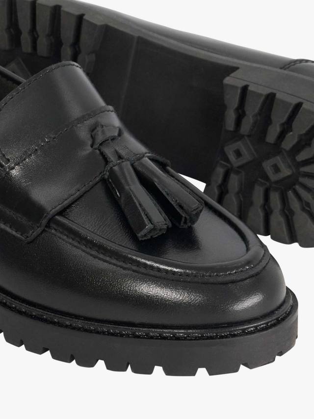 Эти кожаные лоферы на низком плоском каблуке обеспечат вам комфорт даже в самые напряженные рабочие дни. Сдержанный миндалевидный носок и открытый задник добавят немного непринужденности, а крупные кисточки создадут элегантный повседневный образ.