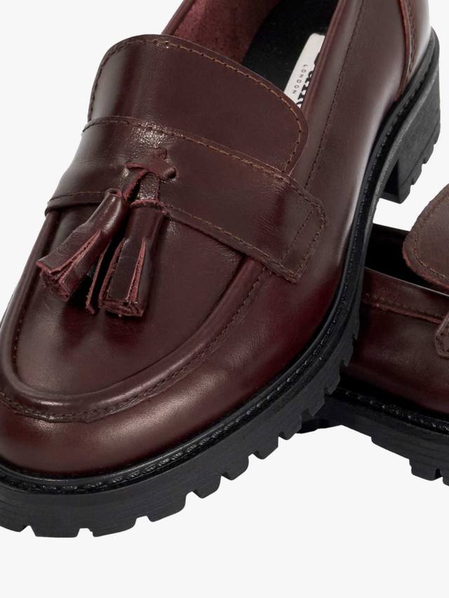 Эти кожаные лоферы на низком плоском каблуке обеспечат вам комфорт даже в самые напряженные рабочие дни. Сдержанный миндалевидный носок и открытый задник добавят немного непринужденности, а крупные кисточки создадут элегантный повседневный образ.