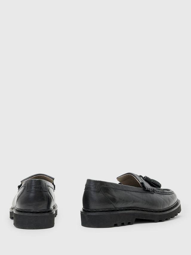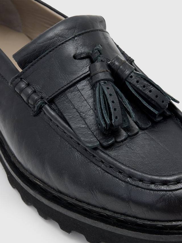 Лоферы AllSaints из мягкой кожи с прочной резиновой подошвой. Современный круглый носок и шнуровка обеспечат вам комфорт и уверенность как на работе, так и в выходные, а отложной фартук с бахромой и фирменная кисточка в виде седла создадут впечатление, куда бы вы ни отправились.