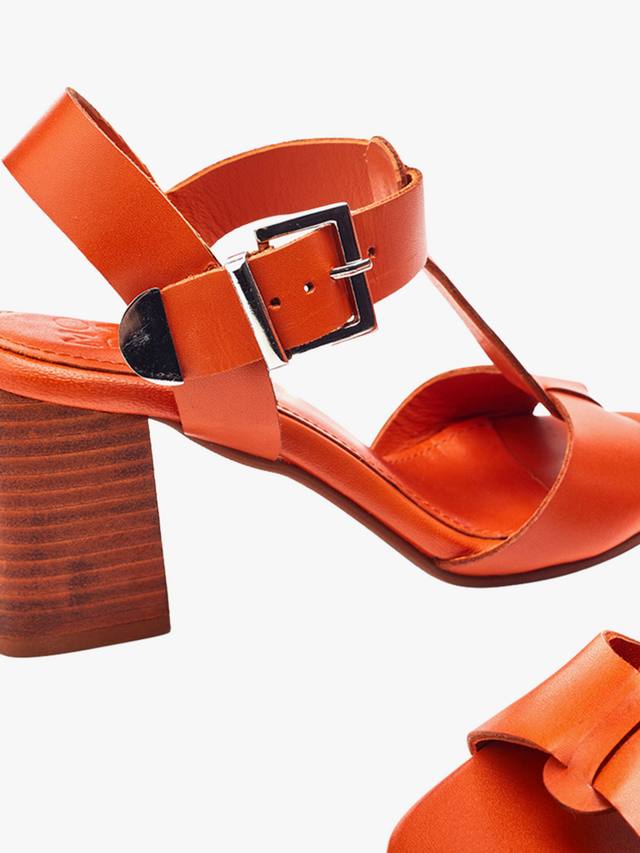 Появитесь в босоножках с блочным каблуком Molliey, Moda in Pelle, которые отличаются гибким кожаным верхом и Т-образным ремешком с пряжкой.