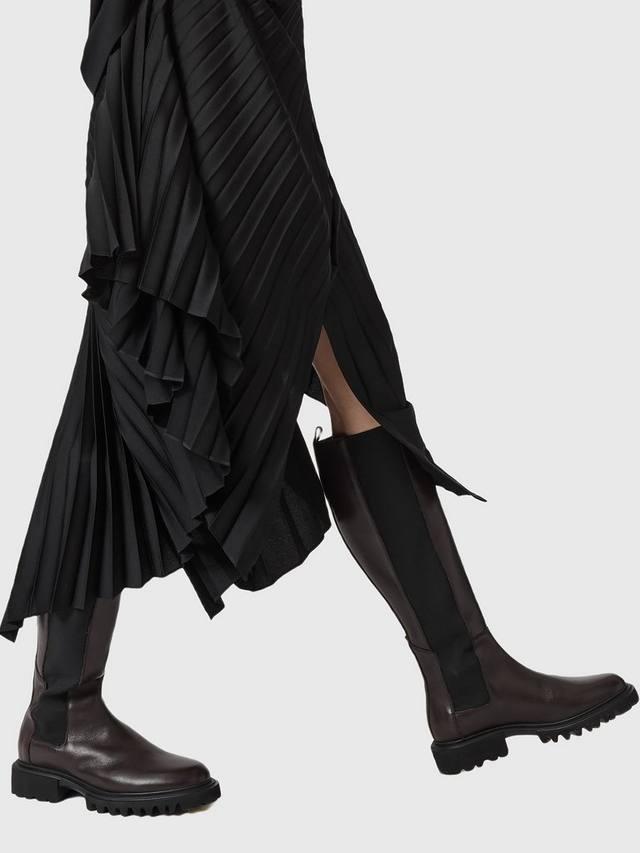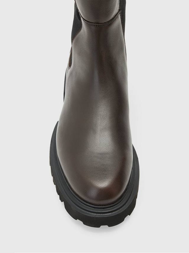 Эти сапоги до колена изготовлены из мягкой кожи с поддерживающим блочным каблуком для комфорта в течение всего дня. Они легко надеваются в повседневной жизни, обеспечивая практичность и спокойный уверенный стиль.