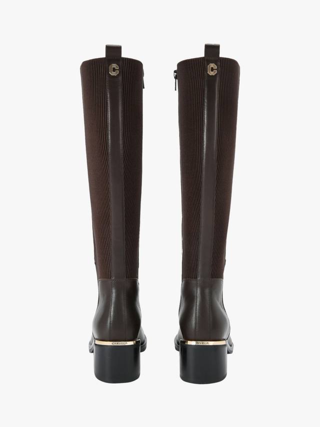 Высокие сапоги Carvela из мягкой кожи с устойчивым блочным каблуком. Легко наденьте их, наслаждайтесь изящным миндалевидным носком и сделайте свой повседневный образ более элегантным.