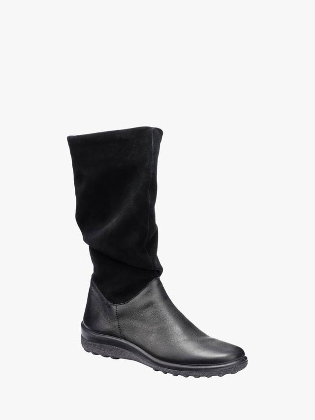 Эти высокие ботинки сочетают в себе кожу и замшу для универсального образа, а также оснащены внутренней молнией по всей длине и незаметной эластичной вставкой для гибкой посадки.