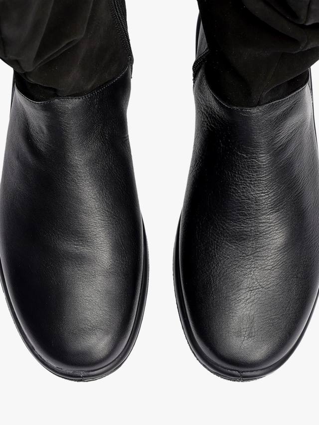 Эти высокие ботинки сочетают в себе кожу и замшу для универсального образа, а также оснащены внутренней молнией по всей длине и незаметной эластичной вставкой для гибкой посадки.