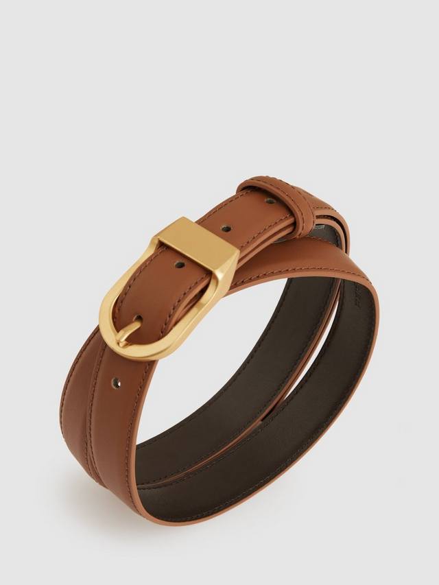 Reiss представляет ремень из мягкой коровьей кожи, который идеально подходит для повседневного ношения. Его лаконичный дизайн подчеркивает индивидуальность и добавляет образу непринужденную уверенность.