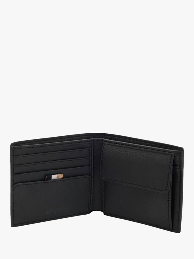 Этот оригинальный кошелек из кожи с узором в виде монограммы имеет четыре отделения для карт и внутренний карман для монет. Он дополнен логотипом бренда, выполненным тиснением серебряной фольги.