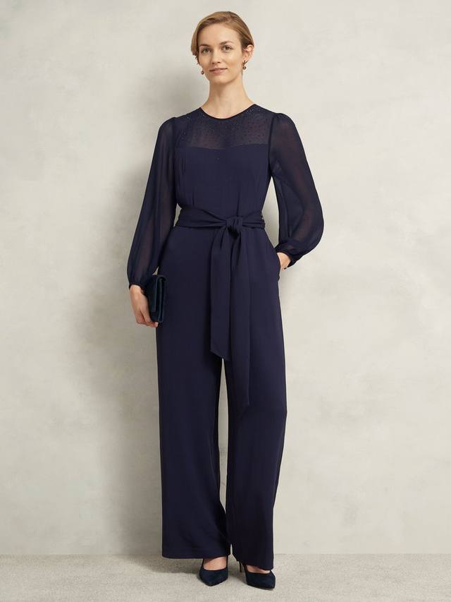 Когда платье вам не подходит, элегантной альтернативой станет комбинезон Anoushka. Украшенный стразами в тон по всей длине, он придаст вашему изделию сезонный шик.