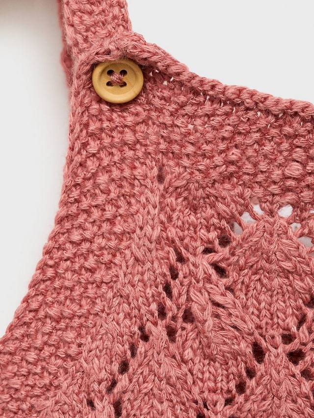 Комбинезон из хлопковой смеси открытой вязки с отделкой из древесных пуговиц и квадратным вырезом.
