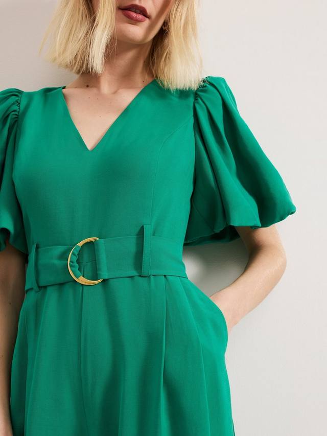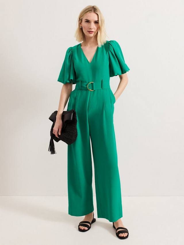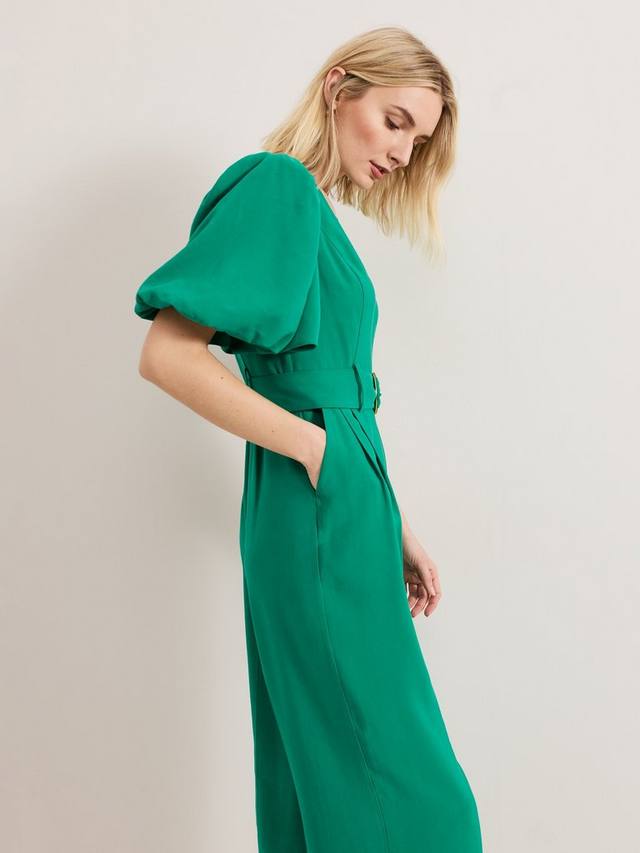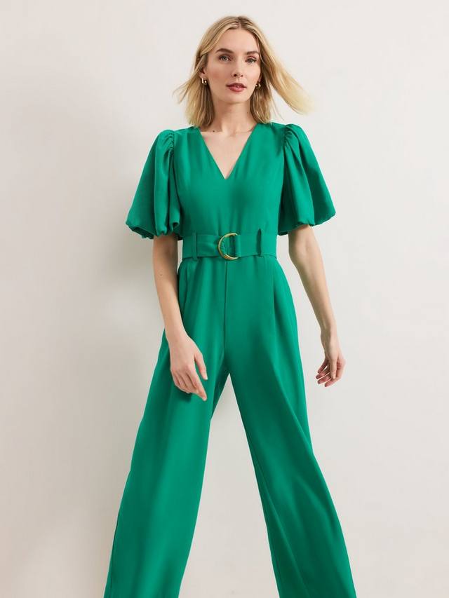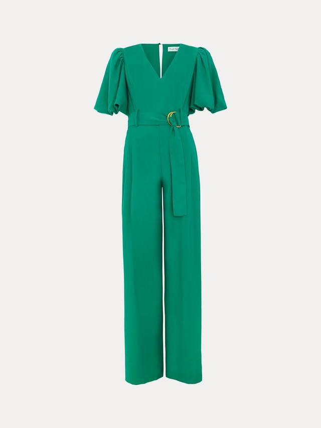 Яркий акцент для уверенного образа. Этот комбинезон отличается современным дизайном, таким как объемные рукава-буфы и потайные карманы. Складки деликатно корректируют широкий силуэт штанин, идеально подходящий для непринужденного дневного или вечернего образа.