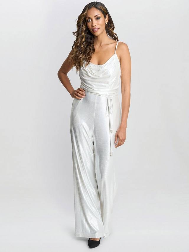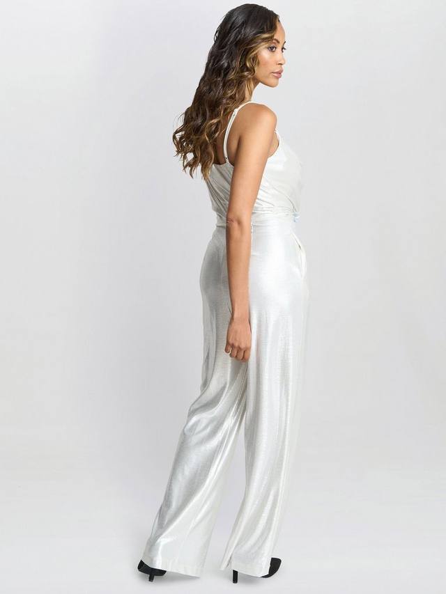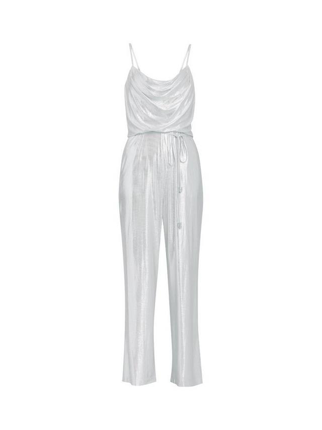 Комбинезон Martina — беспроигрышный вариант для любого случая. Это гламурное изделие с металлическим блеском, выполненное из мерцающей ткани с деликатной фольгированной отделкой, которая красиво играет на свету. У комбинезона драпированный воротник-хомут и тонкие бретели создают элегантный и женственный образ.