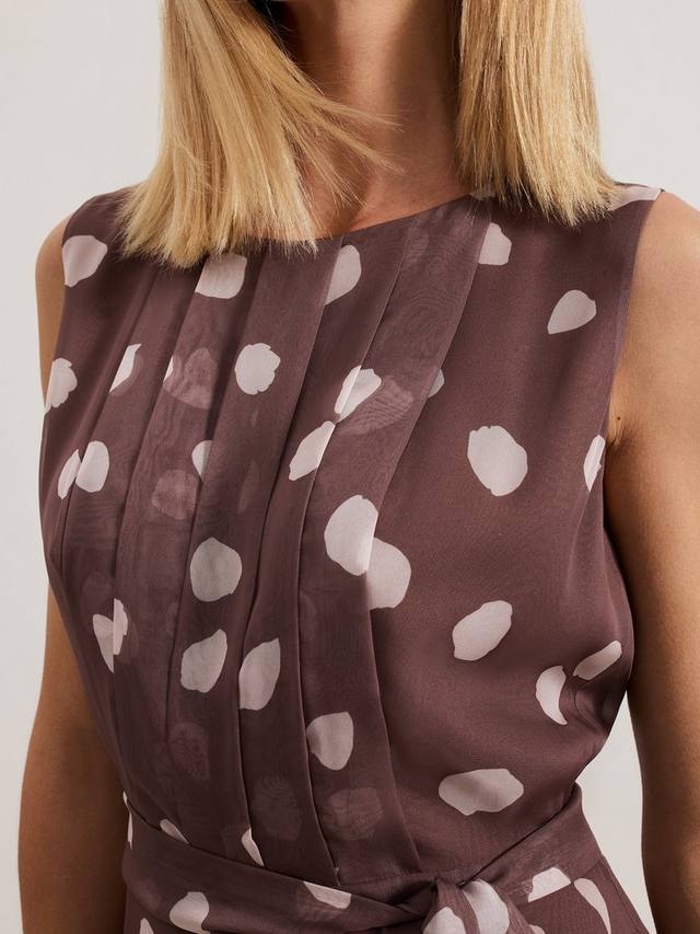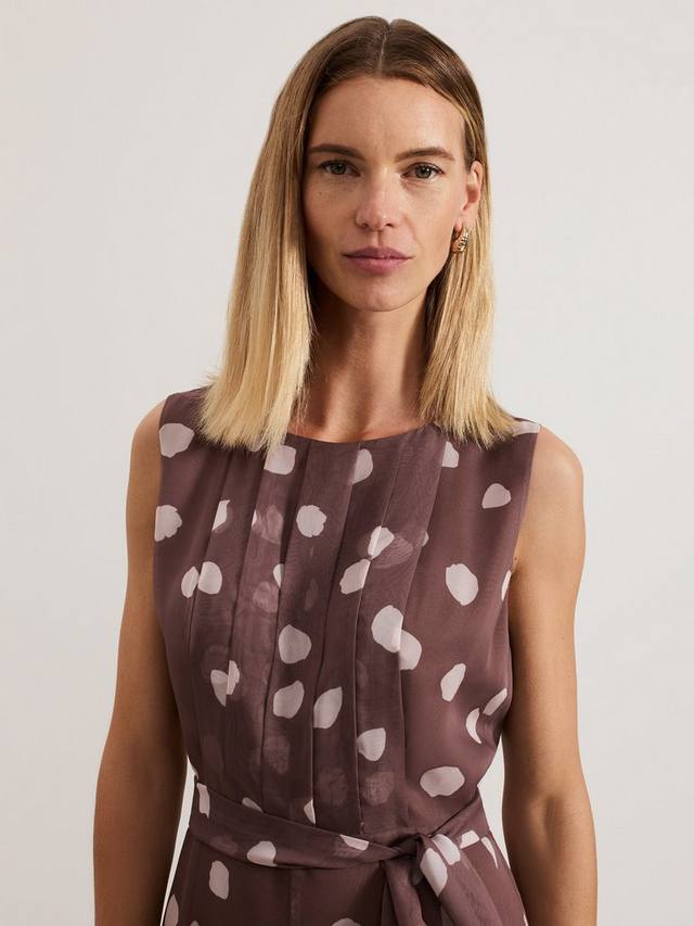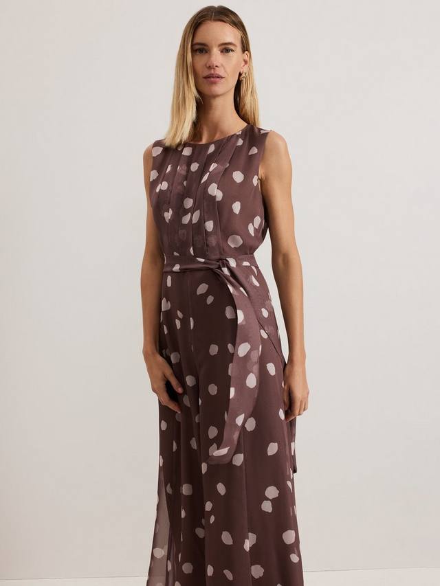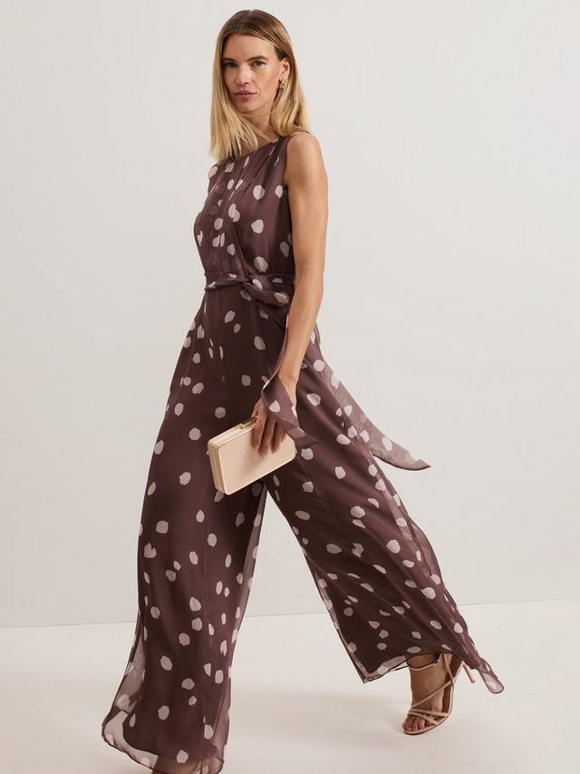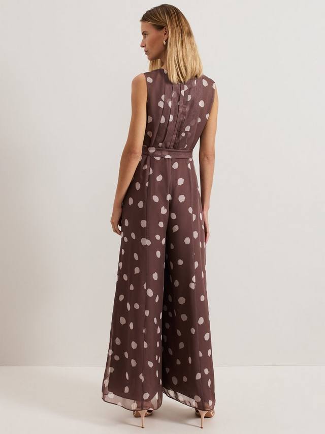 Представляем шифоновый комбинезон с классическим узором в горошек. Комбинезон Maxine идеально подходит для любых предстоящих мероприятий: он украшен лёгкой плиссировкой на лифе, а завязка в тон подчеркивает талию, образуя свободный силуэт с широкими штанинами. Дополните образ любимыми каблуками, чтобы создать женственный образ для мероприятия.
