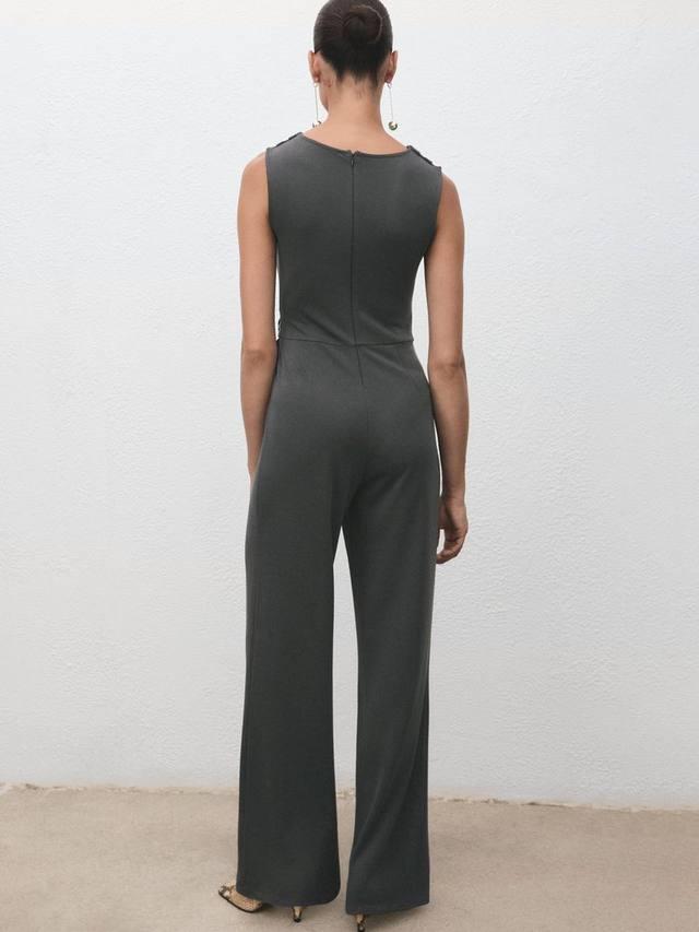 Почувствуйте комфорт и уверенность в себе в этом комбинезоне без рукавов. Круглый вырез, узел и простой широкий крой брюк позволяют легко создать стильный образ, а практичная ткань обеспечит вам хорошее настроение от утреннего кофе до вечерних планов.