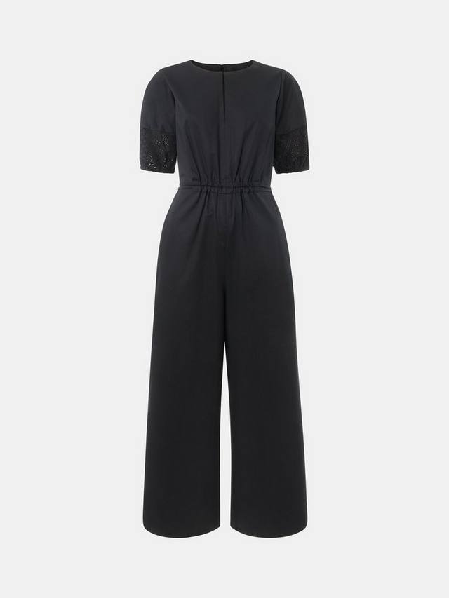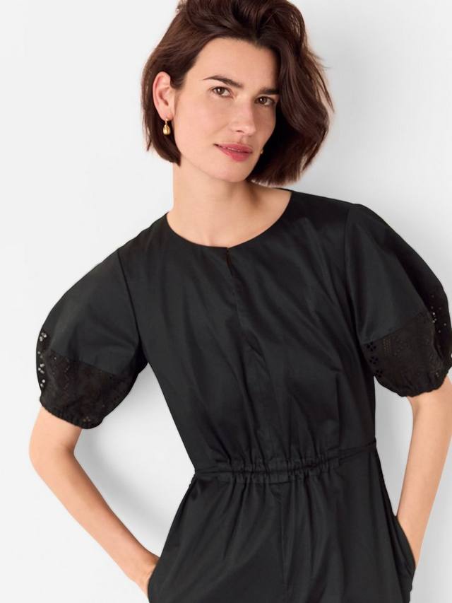 Наденьте этот комбинезон, добавьте кардиган, и вы готовы к выходу! Этот стильный комбинезон из хлопкового поплина идеально подходит для лета: эластичная талия и рукава-буфы с пуговицами и вышивкой.