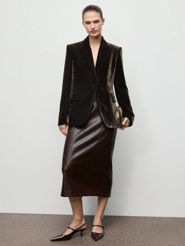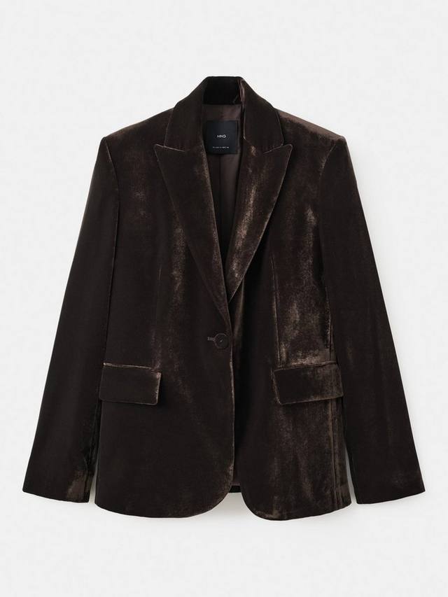 Этот блейзер от Mango, аккуратно скроенный для создания элегантного образа, выполнен из мягкого бархата, который придаст любому образу изысканный вид.