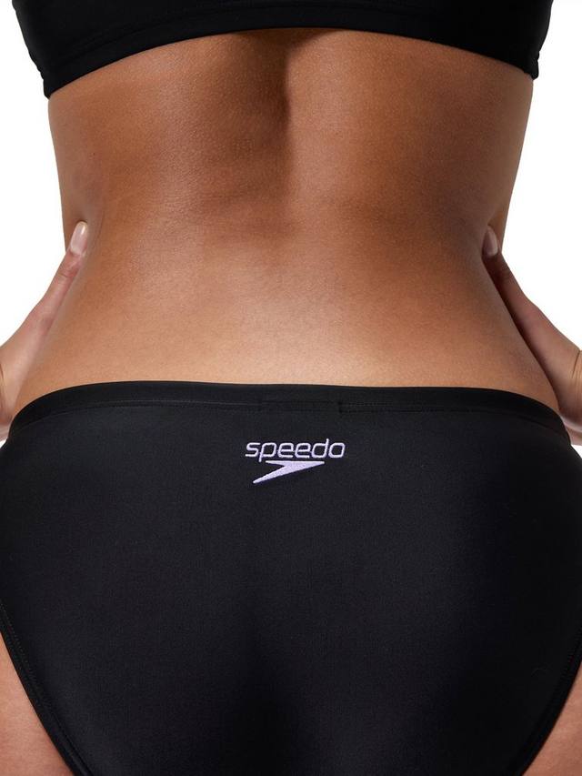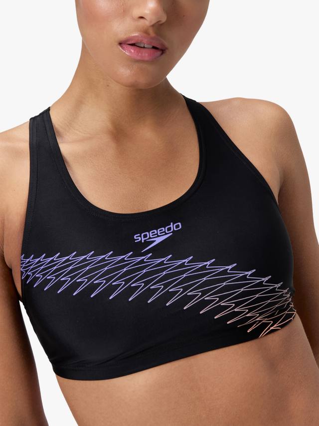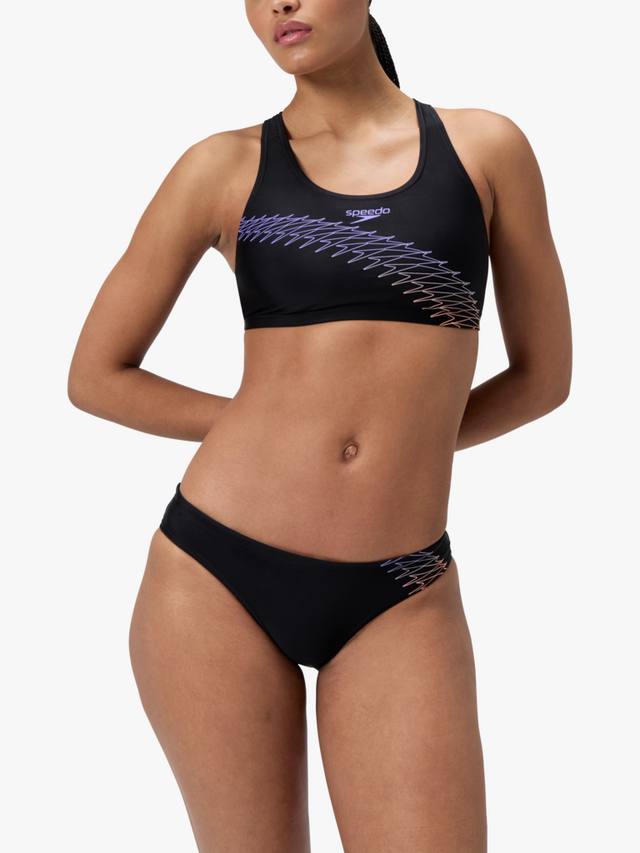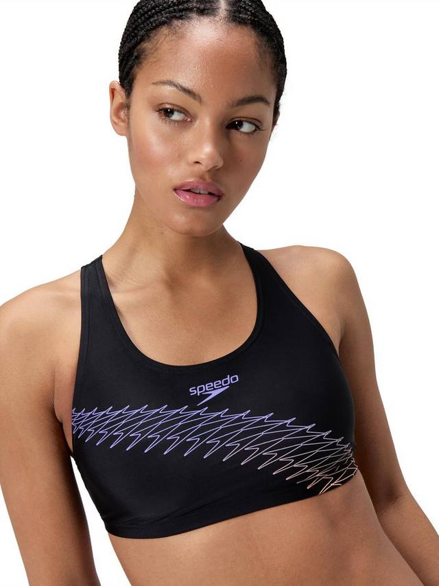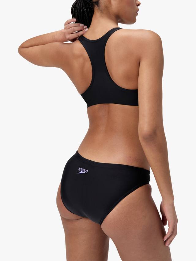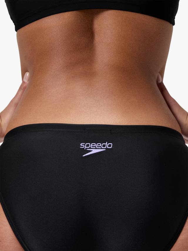Добьтесь своих фитнес-целей в спортивном черном бикини Speedo с лаконичным логотипом Boom. Спинка-борцовка обеспечивает полную подвижность плеч, позволяя вам продолжать тренироваться в быстром темпе. Затяните шнурок на трусиках для надежной посадки и отправляйтесь в бассейн. Изготовлено из устойчивой к хлору ткани EnduraFlex, растягивающейся в 4 направлениях, и формоустойчивого волокна CREORA HighClo.