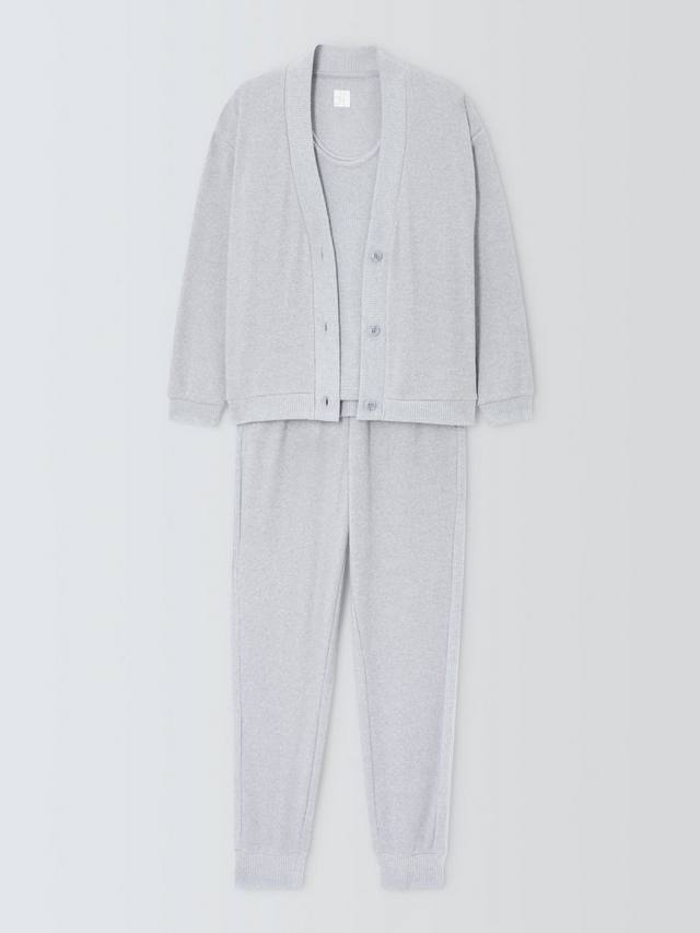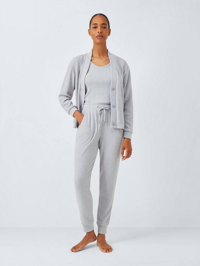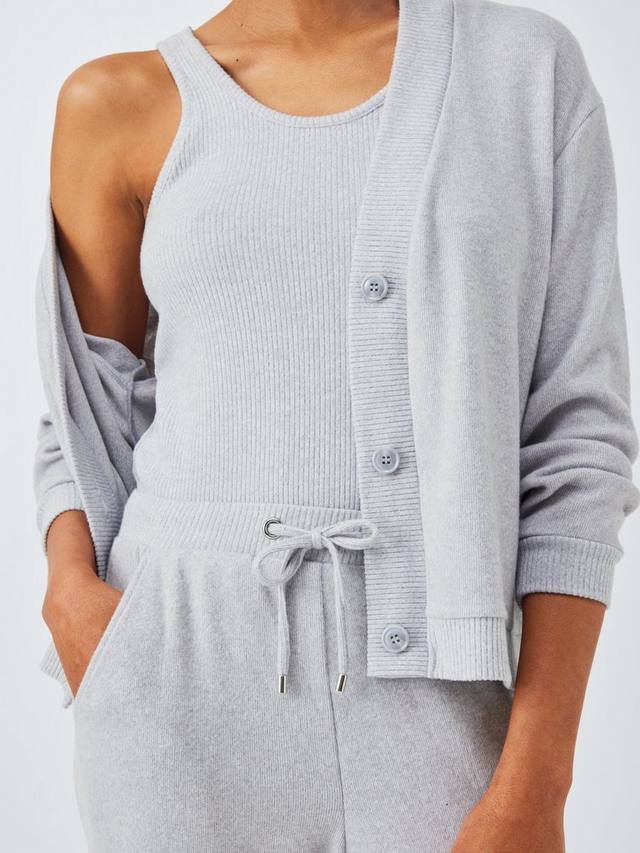 Этот комплект для гостиной — готовый наряд для вашего следующего свидания с диваном: ребристый верх, кардиган и нижние брюки с полосками по бокам.