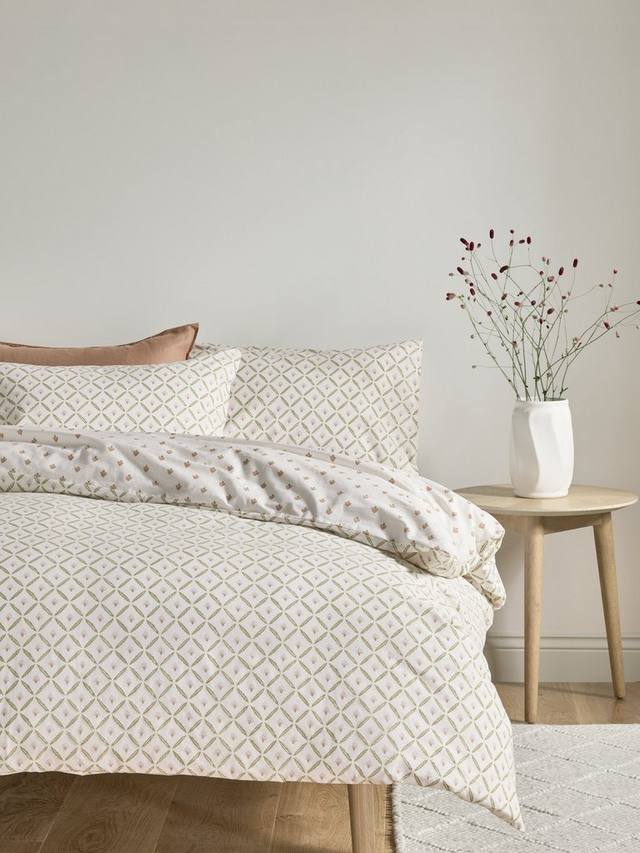 Свежий и симпатичный стилизованный цветочный решетчатый узор с дополнительным принтом на изнанке, выполненный из 100% хлопковой ткани, которая поможет вам сохранить прохладу и комфорт на протяжении всей ночи.
