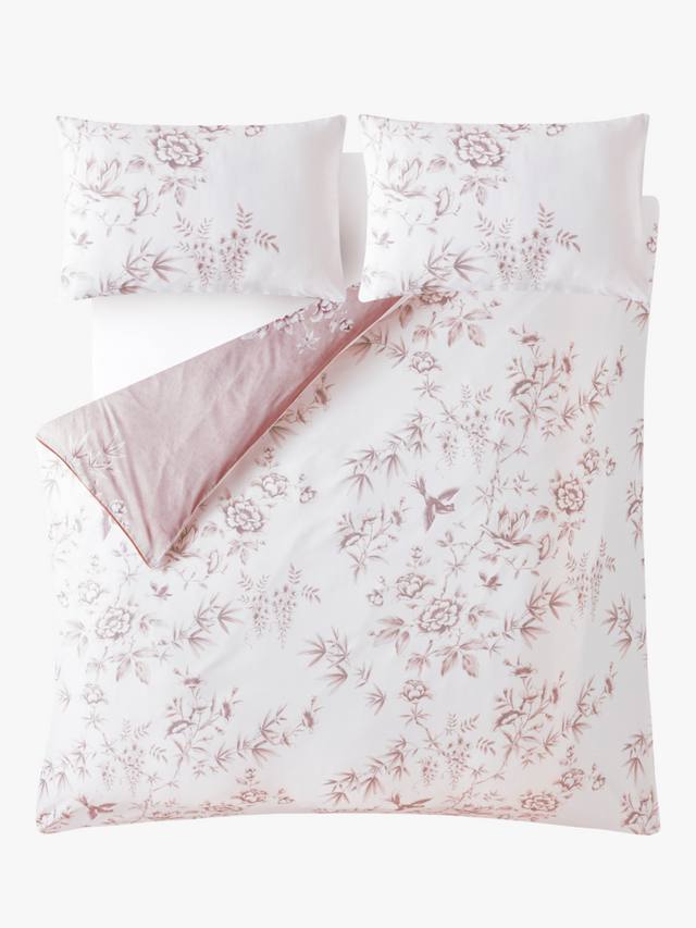 Добавьте элегантности в свою спальню с помощью великолепного двустороннего постельного белья Rowsham Garden. Прекрасные цветы глицинии, пиона и магнолии в стиле китайского стиля украшают это роскошное постельное белье из хлопкового сатина плотностью 220 нитей в непреходящей палитре тёплых, естественных оттенков и белоснежного цвета.