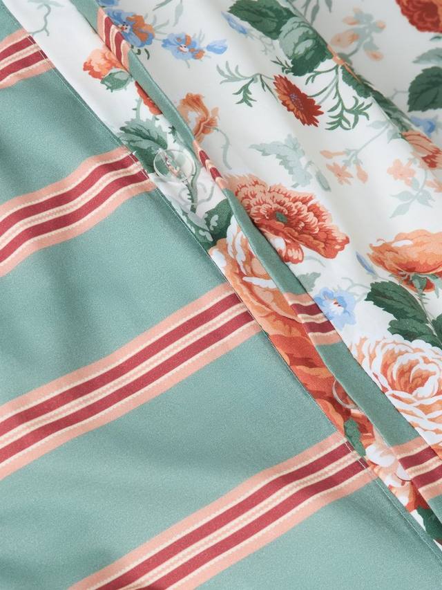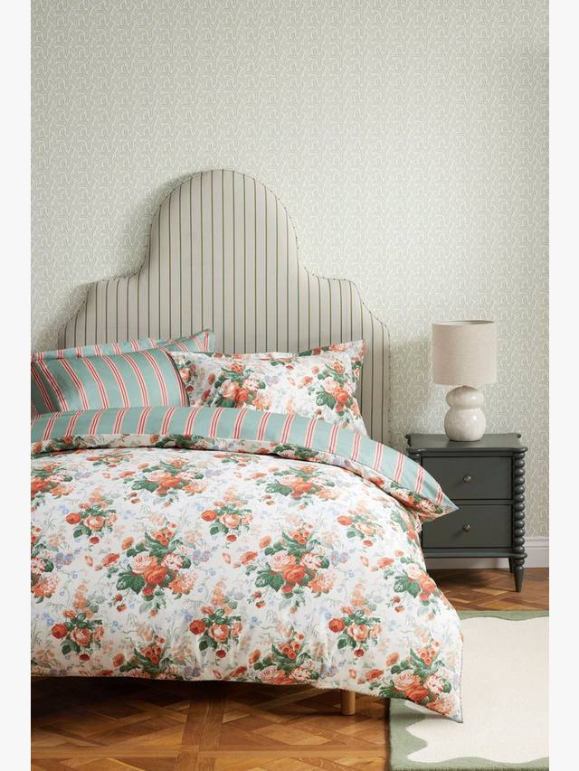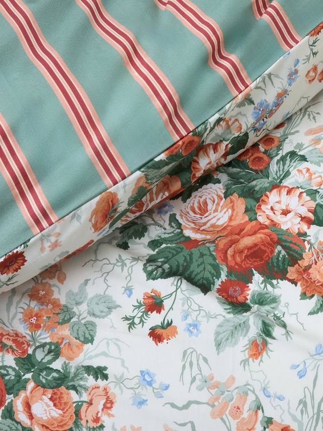 Этот крупный цветочный букет в типично английском стиле, изначально нарисованный вручную Пэтом Этериджем в 1990 году, сочетает розы, васильки, наперстянки и гортензии с ниспадающими стеблями и листвой. Полосатый рисунок на обороте прекрасно контрастирует с цветочными букетами. Наволочки Oxford дополняют комплект, изготовленный из 100% хлопка.