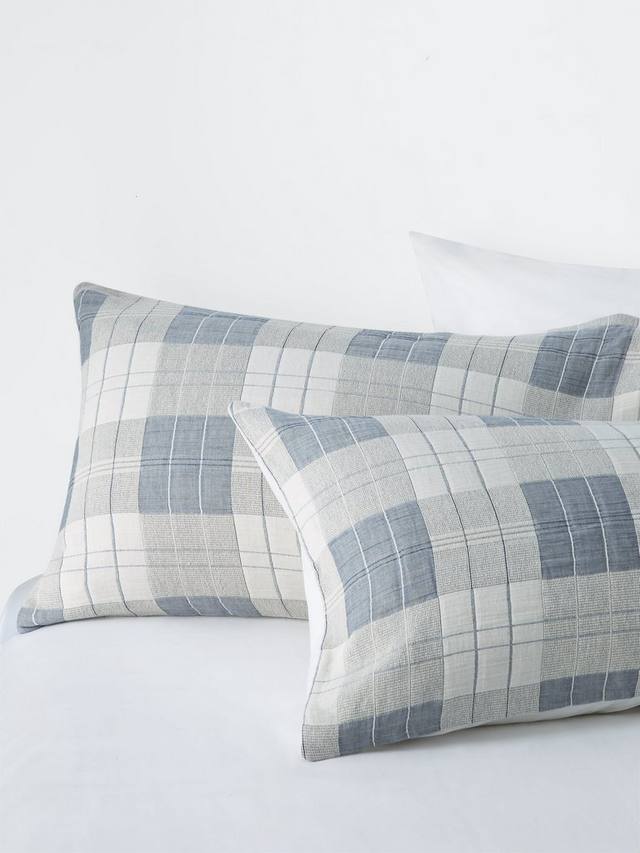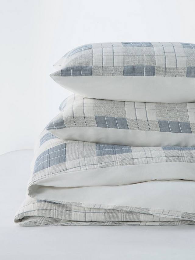 Клетчатый жаккардовый узор, сотканный на газовой ткани, создает впечатление легкой стеганой наволочки.