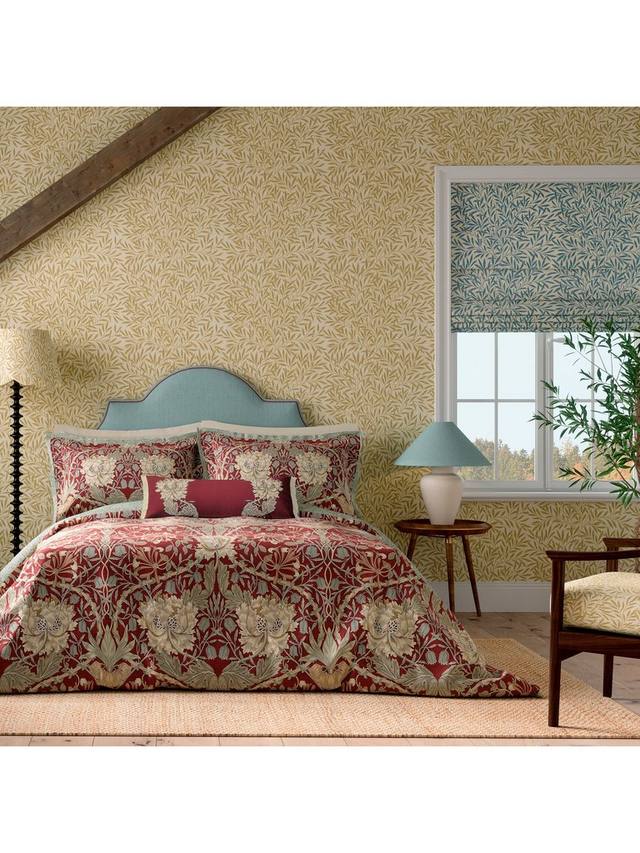 Жимолость и тюльпан, один из самых знаковых дизайнов Morris & Co, изначально был выпущен в виде обоев в 1876 году. Классический дизайн теперь переосмыслен в богатой цветовой гамме и выполнен в виде пододеяльника из роскошного хлопкового перкаля плотностью 220 нитей.