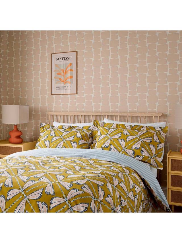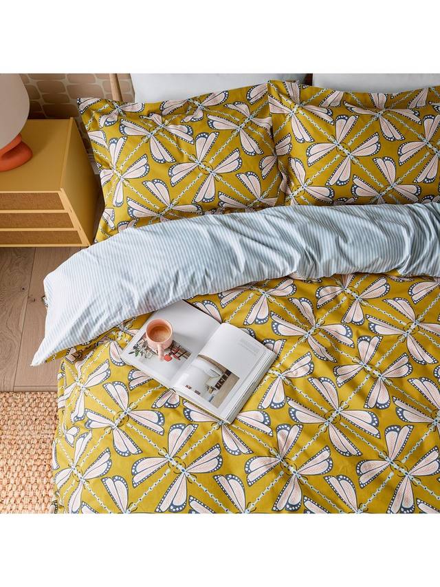 Изысканная картина Лунные полёты изображает переплетённых стрекоз, образующих новый геометрический узор. Эти насекомые светятся в лунном свете, создавая прохладные и мягкие тона на фоне тёплой земли — любимого цвета в палитре Scion. Изнаночная сторона одеяла — простая полоска, идеально подходящая для отворота постельного белья. В комплект, напечатанный на чистом хлопке, входит: 1 наволочка Oxford в односпальном комплекте и 2 наволочки Oxford в двухспальных, двуспальных и супер-королевских комплектах.