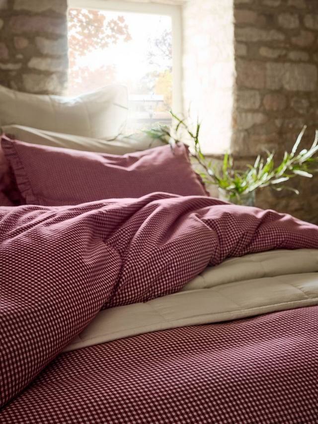 Создайте роскошный зимний уголок с этой классикой в клетку гингем. Полоска цвета мерло, окрашенная пряжей, создаёт ощущение британской старины и дополнена роскошной женственной оборкой.