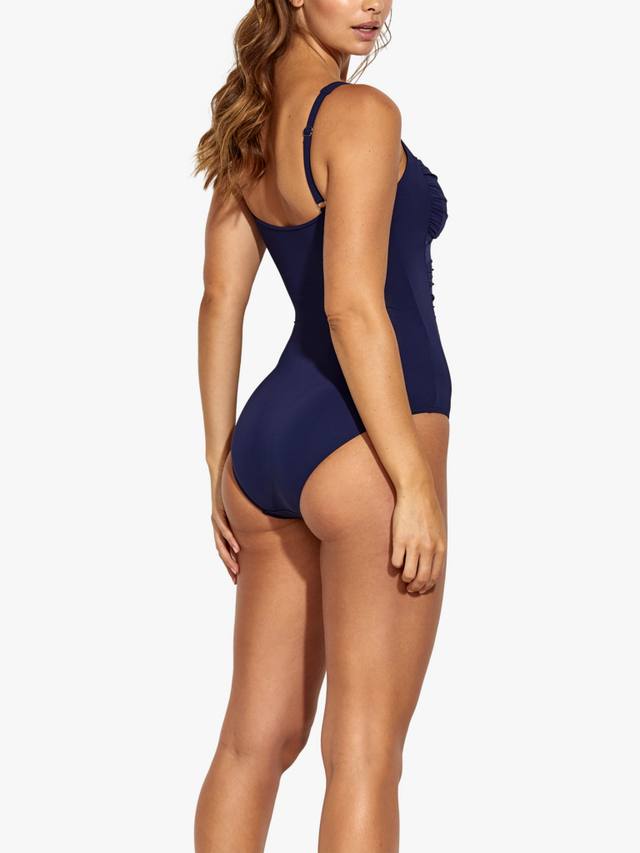 Декоративные оборки и изящный крой на груди придают этому купальнику Panos Emporio изысканный силуэт.