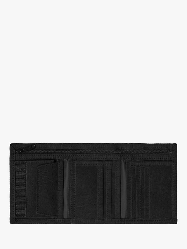 Кошелек Alec от Carharrt WIP изготовлен из ткани Duck Canvas – прочной и водоотталкивающей ткани на основе переработанного полиэстера. Застежка на липучке. Внутри отделение для купюр на молнии, шесть отделений для карт и карман для монет на липучке. За отделениями для карт и монет расположены дополнительные скрытые отделения. Тканая квадратная этикетка спереди завершает дизайн.