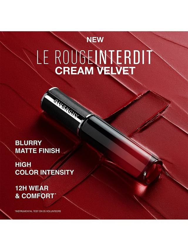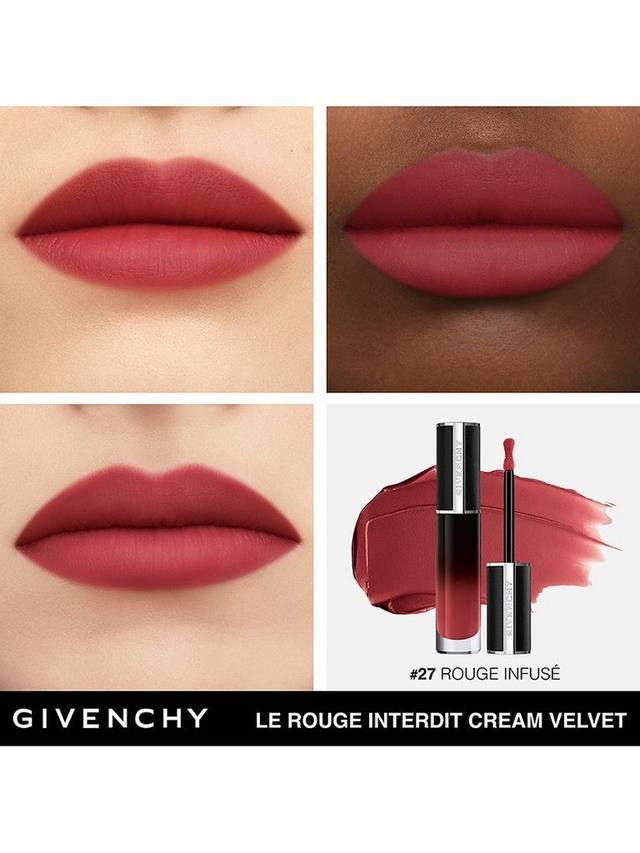 Откройте для себя размытый эффект Givenchy Le Rouge Interdit Cream Velvet, новой кремовой матовой помады с ярким цветом. Обеспечивая 12-часовое увлажнение***, ультра-чувственная формула окутывает ваши губы 12-часовой стойкостью** и комфортом*. Первая кремовая жидкая помада Givenchy, сочетающая в себе неуловимо легкую бархатистую текстуру и невероятную цветопередачу.
